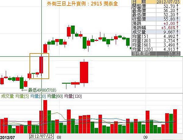 2012/07/23~25出現了外側三日上升的型態,