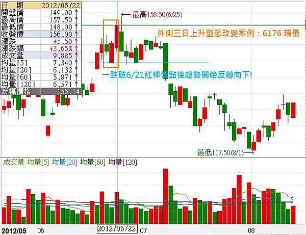 2012/06/20~22睿移出現了外側三日上升的型態,